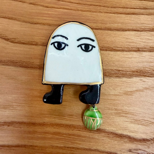 ジュエル(鶸色) 陶芸家五福香菜子の作品。 清水焼の技法で陶器に色絵を施しています。 陶製 手描イラストの桐箱入り 桐箱の内寸 5.3×5.3㎝ 大きさの参考に三分紐(幅9mm)の上に置いて撮影しました。 (紐は付属しておりません。) 手作り手描きの為、少しづつ大きさや形が異なります。 ご了承ください。 裏の金具をブローチに変更できます。ご希望の場合は備考欄にご記入ください。